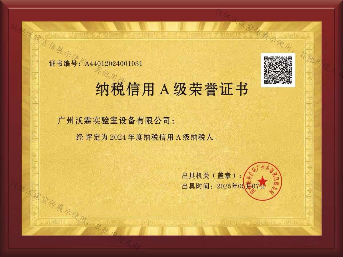 2025-06-11   喜訊|熱烈祝賀廣州沃霖實(shí)驗(yàn)室設(shè)備有限公司連續(xù)五年榮獲“納稅信用A級納稅人”稱號!